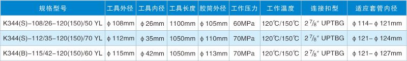 2、該封隔器采用鋼絲骨架膠筒,承壓、耐溫性能優(yōu)異;