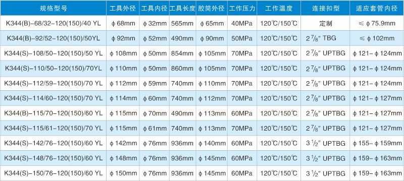 * 注:非以上型號封隔器,我公司可進(jìn)行另行開(kāi)發(fā)。所有工具連接扣型為出廠(chǎng)預制,如需特殊扣型,可另行加工定制。